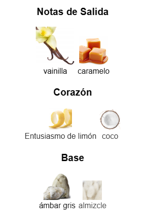 las Notas de Corazón son Entusiasmo de limón y coco;
