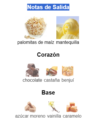 Las Notas de Salida son palomitas de maíz y mantequilla;