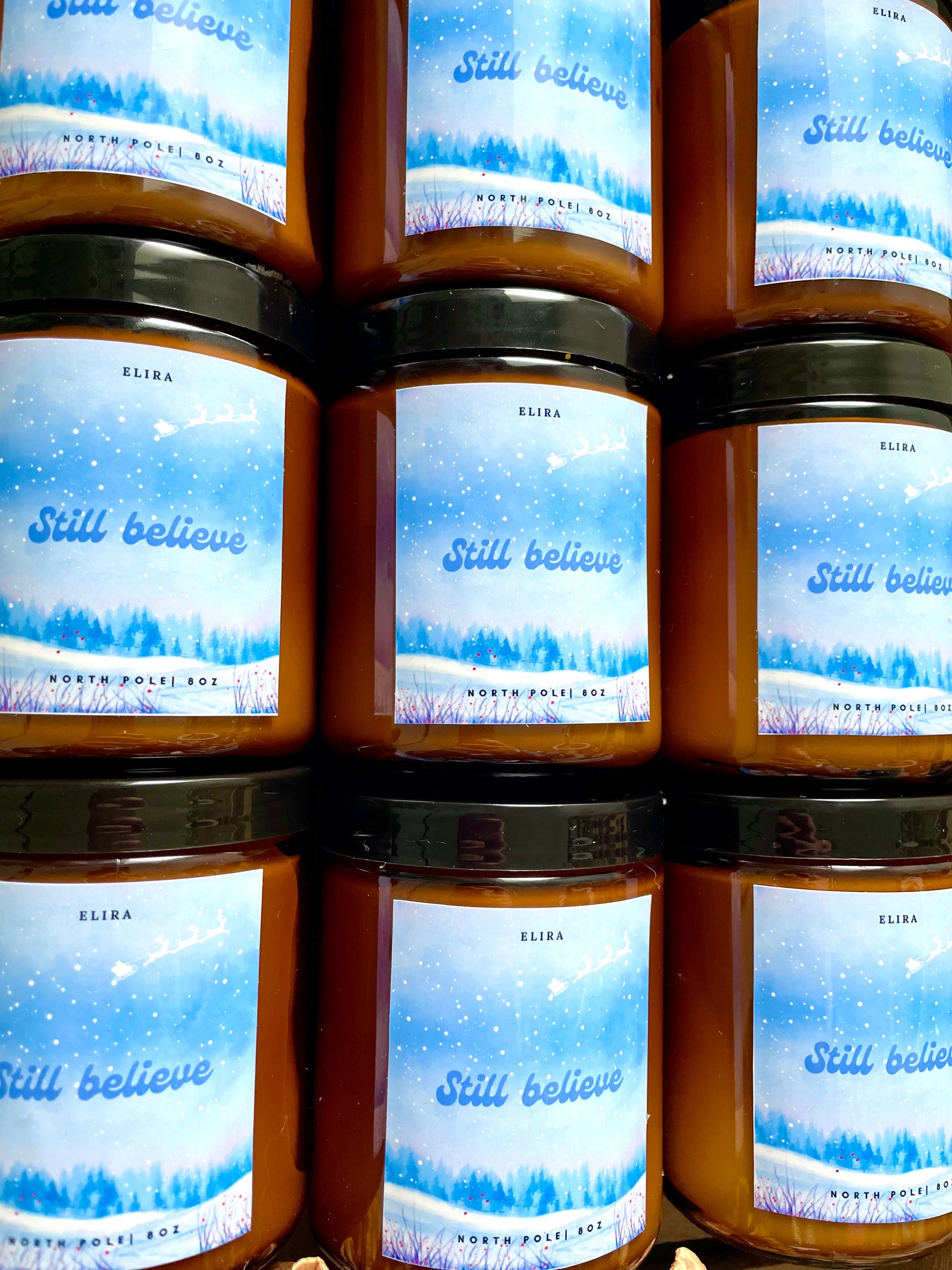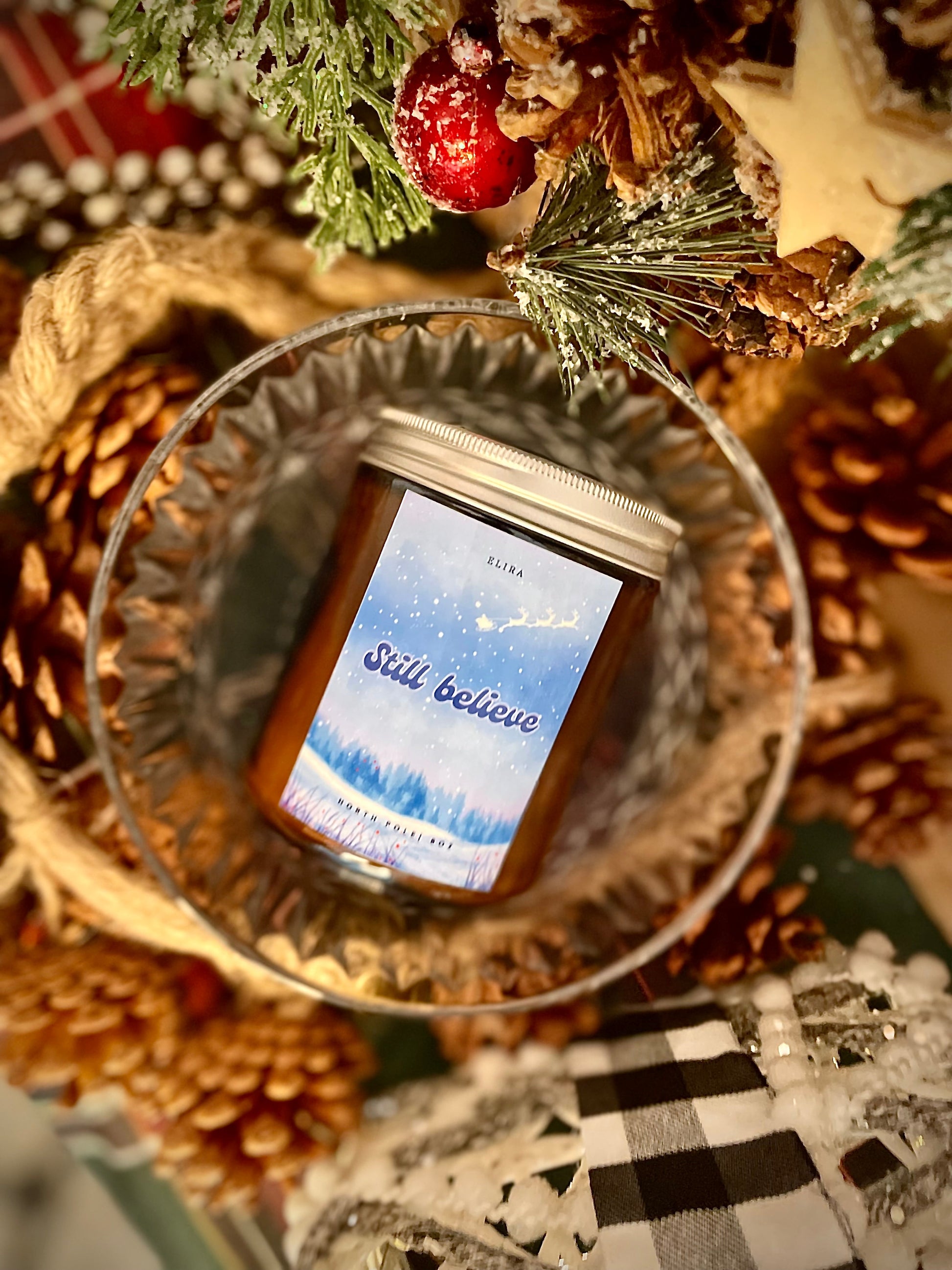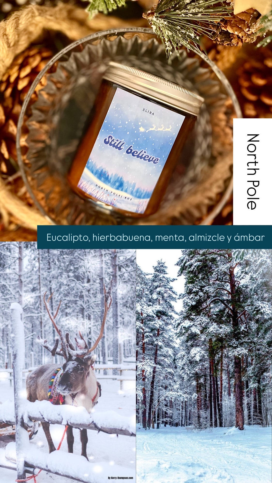 La vela "Still believe"(Sigo creyendo), es una de las velas más frescas de la colección, con sus notas de menta, eucalipto y hierbabuena, te trasladará al mismo Polo Norte.